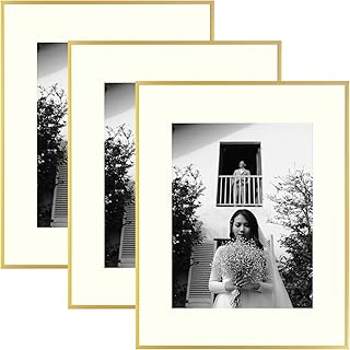 Golden State Art, Metal Wall Photo Frame Collection, Aluminum Photo Frame with Ivory Color Mat for Picture & Real Glass (Gold, 12x16 Frame, 3-Pack) 141[並行輸入]
