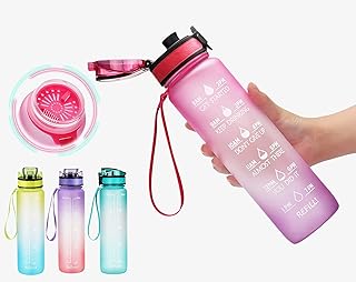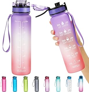 NeBaee 1000ml/750mlを飲むことを奨励する時間目盛の印が付いているプラスチック製の水筒 (1000ml, 1000ml - オレンジとパープルのグラデーション)