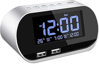 Alarm Clock Radio,FM with Sleep Timer,Dual USB Ports for Charging,Dual Alarms,Digital Display with Dimmer,Snooze,Thermometer for Bedrooms,Adjustable Volume,Gift for Kids,Heavy Sleepers (White)