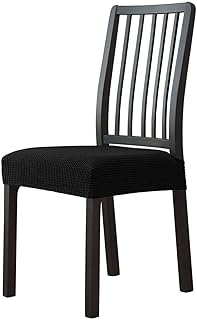 座面カバー ストレッチ, ダイニングチェアカバー 取り外し可能 ジャカード ダイニングチェアプロテクター 滑り止め 洗える チェアカバー ために ダイニングルーム-黒-4 PCS