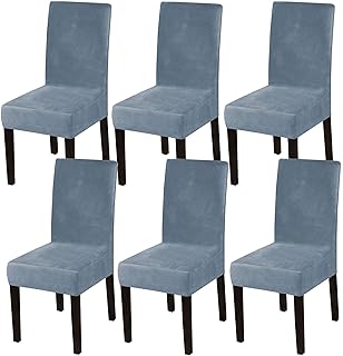ストレッチ ベルベット 椅子カバー, 取り外し可能 滑り止め チェアカバー, 座面カバー ホームパーティーホテルの結婚式のために-ブルーC-6枚