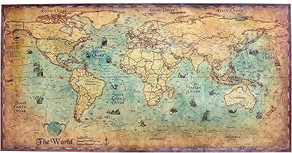 ポスター 世界地図/アンティーク アンティーク風!! オシャレ な 世界地図 ポスター インテリア や 骨董 に 似合う 宝の 地図 コスプレ 海賊 パイレーツポスター 世界地図/17世紀 (多種選択)