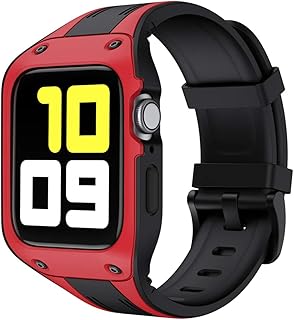 Apple Watch 42mm44mmケース バンド 一体 落下衝撃 吸収 防塵 Apple Watch 42mm ケース バンド 一体 落下衝撃 吸収 シリコンバンド 柔らかい スポーツに向け 交換バンド 装着簡単 Apple Watch Series5/ 4/3/2/1対応 (AppleWatch3/2/1 42mm, ブラック + 赤)
