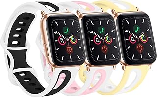 3パックシリコンバンドコンパチブル Apple Watch バンド アップルウォッチ バンド 新デザイン スポーツバンド 交換バンド 柔らかい シリコン素材 apple watch series 5 4 3 2 1に対応 (38mm/40mm S/M, 白/ピンク+クリームイエロー/白+白/黒)