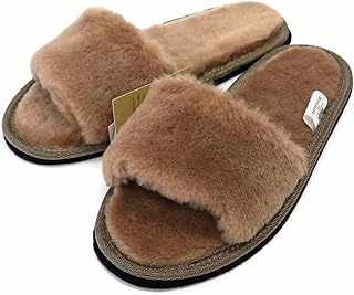 FURFURMOUTON 洗える 前開きスリッパ 通気性 【色とサイズが選べる】 メリノウール スリッパ 男女兼用 ふわふわ さらさら ファースリッパ 天然羊毛 ルームシューズ E803 (ブラウン, M)