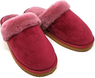 FURFURMOUTON あったか 天然羊毛ルームシューズ 【色とサイズが選べる】 サボ サンダル レディース メンズ オーストラリア産天然羊毛を使用 ウール ムートン スリッパ もこもこスリッパ E822 (ワイン, M)