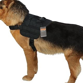 EXCELLENT ELITE SPANKER 犬用ハーネス ミリタリー ハーネス k9 ナイロン製 ハンドル付け 犬 ハーネス 中型犬 咳き込み軽減 犬用ハーネス大型犬 引っ張り止め ハーネス 犬 調整可能 ペット用品(BLK-ブラック)
