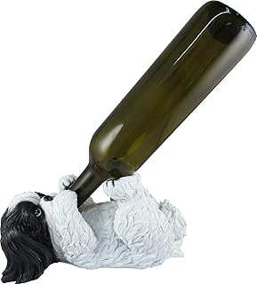 Cute Bark N' Brew 黒と白のシーズー 卓上ワインボトルホルダー 9 1/2インチ