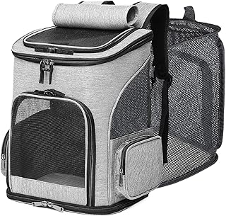 WOOCE 猫キャリー バッグ ペットキャリーバッグ ペットバッグ リュック ペットハウスリュック 拡張可能 折りたたみ可 猫 犬 小型犬 うさぎ 通気性抜群 お出かけ用 旅行 通院 緊急避難 敷き付き(グレー)