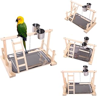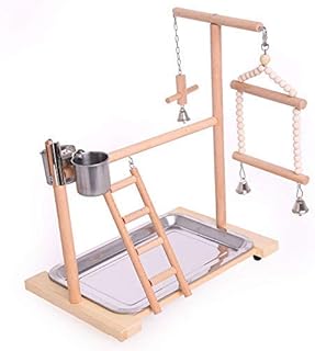 Batreetek 鳥オウムプレイスタンド遊び場 ウッド 鳥スタンド 止まり木 ケージスタンド 水台 餌台 プレイグラウンド 鳥かご ケージ用 小鳥 小動物 ペット用 (#1)